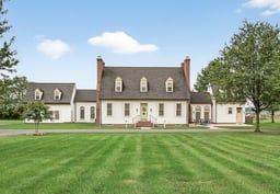 Multiple gathering spaces—formal dining, living, and family rooms, plus a carriage house—each feature their own brick fireplace. A library/game room and full bath complete the main level, accented by charming brick flooring. The primary suite offers a brick fireplace, spa-like bath with jetted tub and shower, and walk-in closet. Another bedroom with full bath and laundry complete the upper level. The carriage house adds a private bedroom and bath—perfect for guests. The walk-out lower level provides a recreation area, workshop, and second laundry setup. Set on nearly 22 picturesque acres, Brown Dog Farm offers sweeping mountain and pastoral views—ideal for farming, equestrian use, or a potential vineyard.